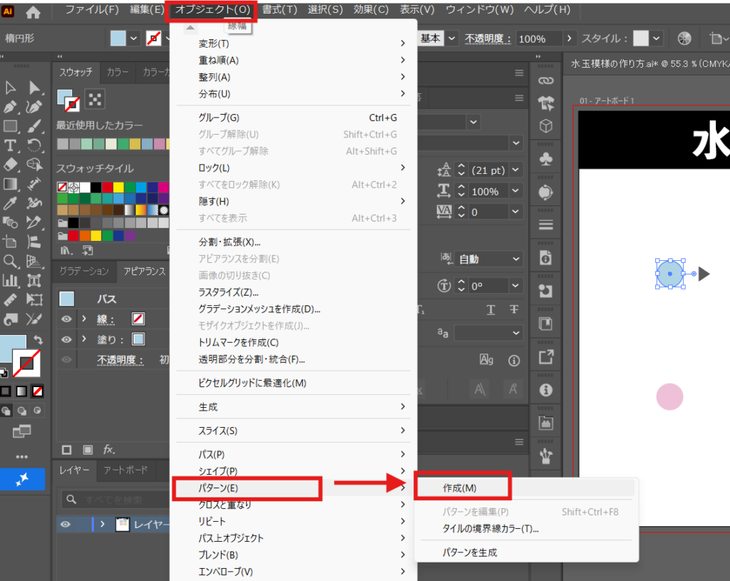 →丸の数だけパスが増えます。パスによってファイルデータが重くなってIllustratorの動きも遅くなります