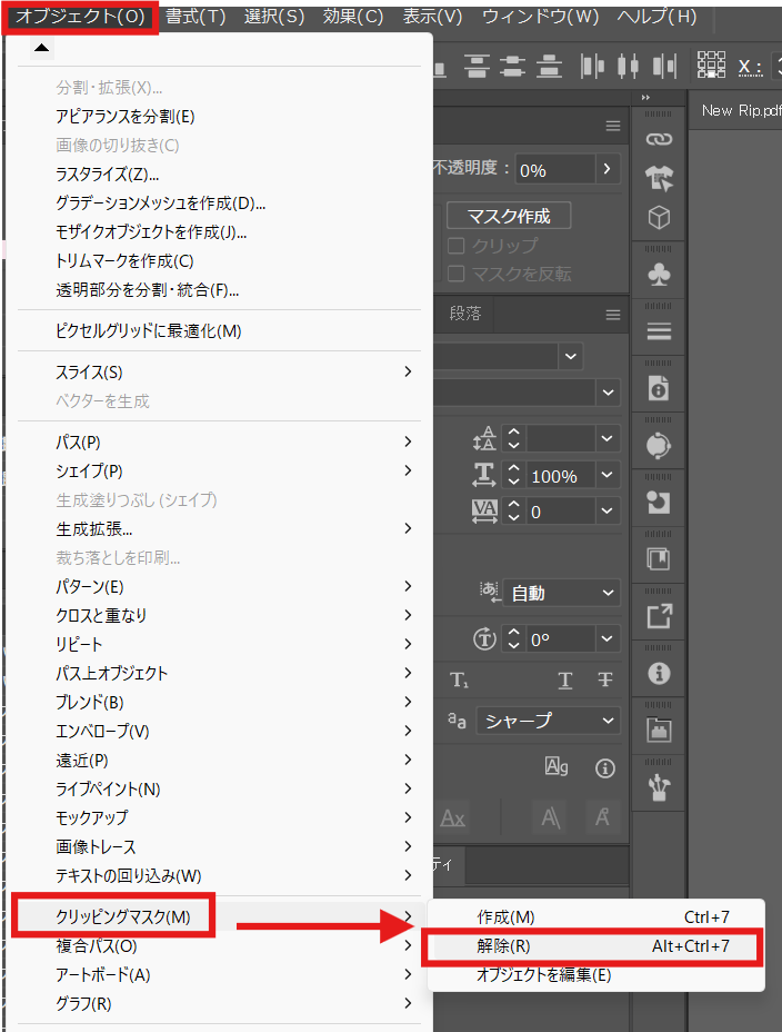 1)Illustratorでクリッピングマスクを一括解除する方法