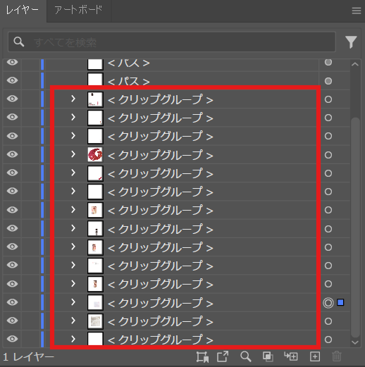 ちなみに、クリッピングマスクをまとめて解除した後に